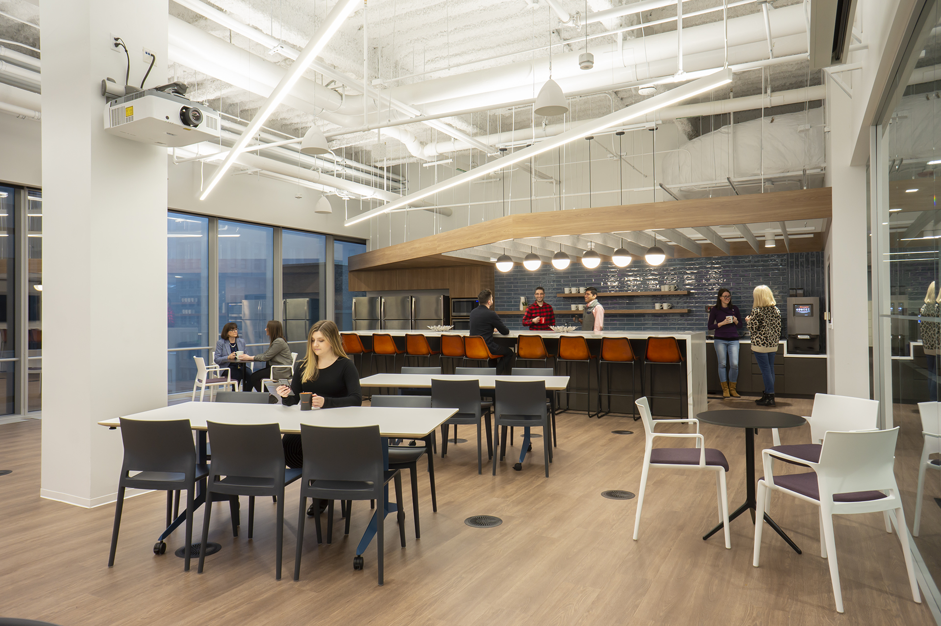 This 40,000 SF collaborative workplace was built on raised floors and combines open office areas with convenient private work spaces and conference rooms. Full-height glass walls, custom ceiling millwork and wall graphics combined with wired, and wireless, technology throughout showcase Nouryon’s brand. The space, designed by Partners By Design, evokes today’s best-in-class contemporary corporate environment.