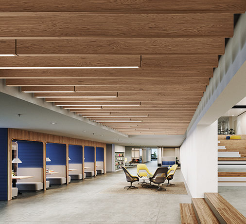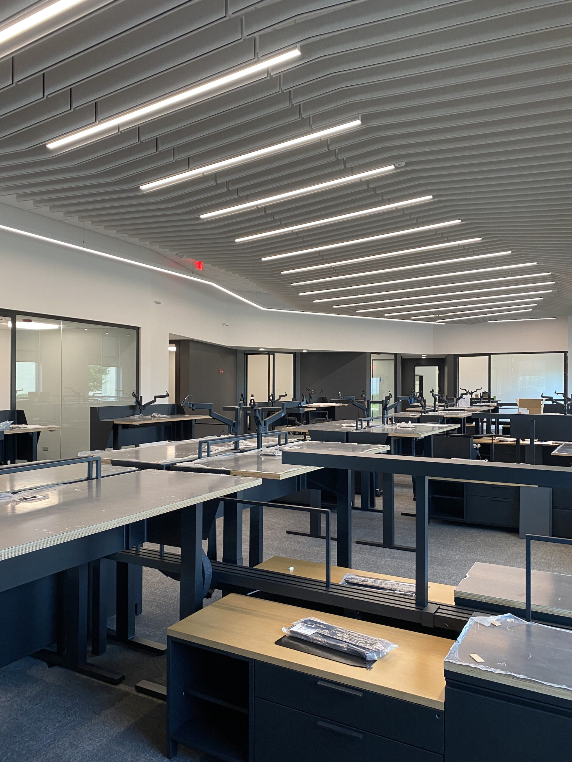 The 7,000 sf office highlights a variety of their wall and ceiling products throughout and was designed for team collaboration and an expression of their culture. For the first time ever, they have a dedicated research and development area allowing them to develop and install real time. The increased production areas included several new pieces of equipment (28 in total) to allow them to be 50% more productive and incredibly more efficient.